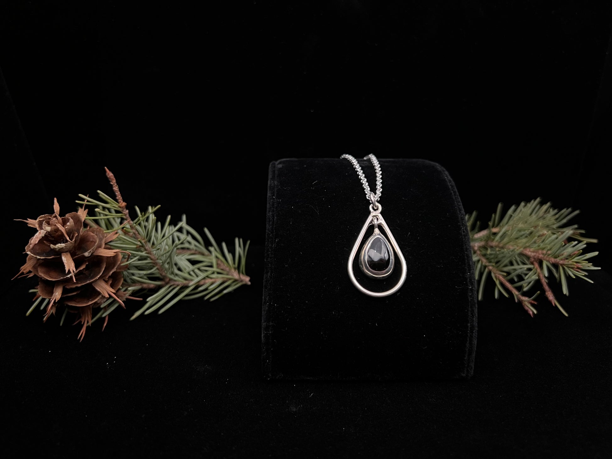 Sterling silver, black onyx teardrop necklace. An 18 “ sterling silver chain is included.